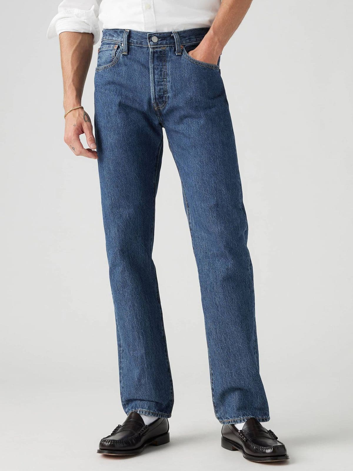 Timeless straight-fit jeans with clean stitching.